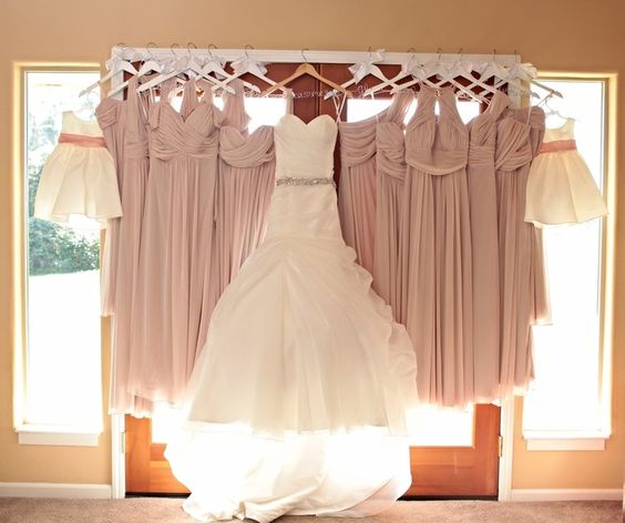 Tip: To create glitter wedding gown hangers, apply a thin coat of Mod Podge on hangers, cover with glitter and shake away excess. Seal with Mod Podge and allow to dry!