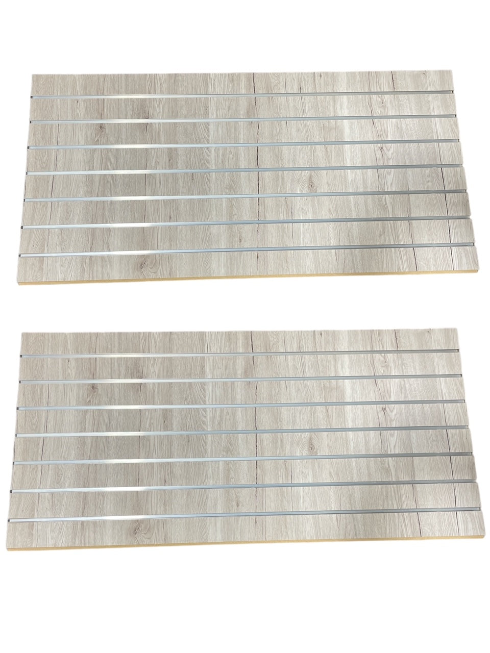 This set of (2) - 24" x 48" slatwall panels are much easier to work with and install than our full size standard slatwall panels. Also, because of the smaller size, they can be shipped via FedEx ground instead of by truck to save in freight costs. These high quality MDF (Medium Density Fiberboard) come with 3" on center grooves and accept all slatwall hardware.One of the key features of these panels is their versatility. The slatwall design allows for easy customization and organization. Simply add hooks, shelves, or other accessories to create the perfect display for your specific needs. This makes it an ideal choice for retail stores, trade shows, craft fairs, and more.
